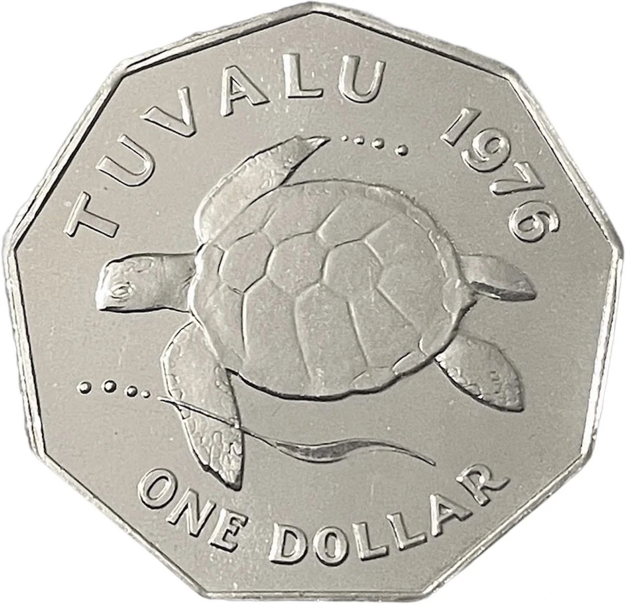 A sea turtle swims above "TUVALU" and the year, with "1 DOLLAR" below.