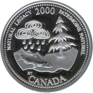 A design symbolizing clean air, water, wildlife, and forests. "Natural Legacy" and "Héritage naturel" flank the central date, with the country name below.