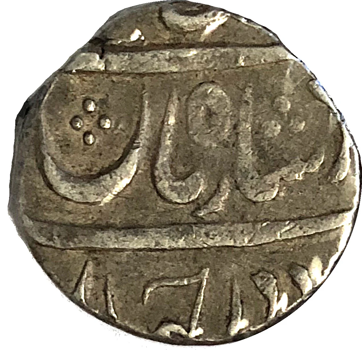 Nam Shahi Rupee from Ahmednagar and other regional Mughal mints. Maratha-administered territories often collected revenue in these widely accepted Mughal coins, granting them de facto legitimacy.