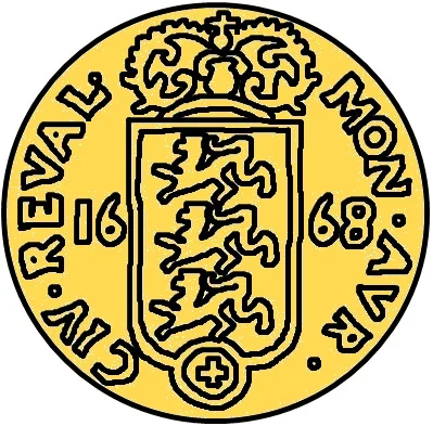Crowned shield with three stacked lions, flanked by date and encircled by legend.