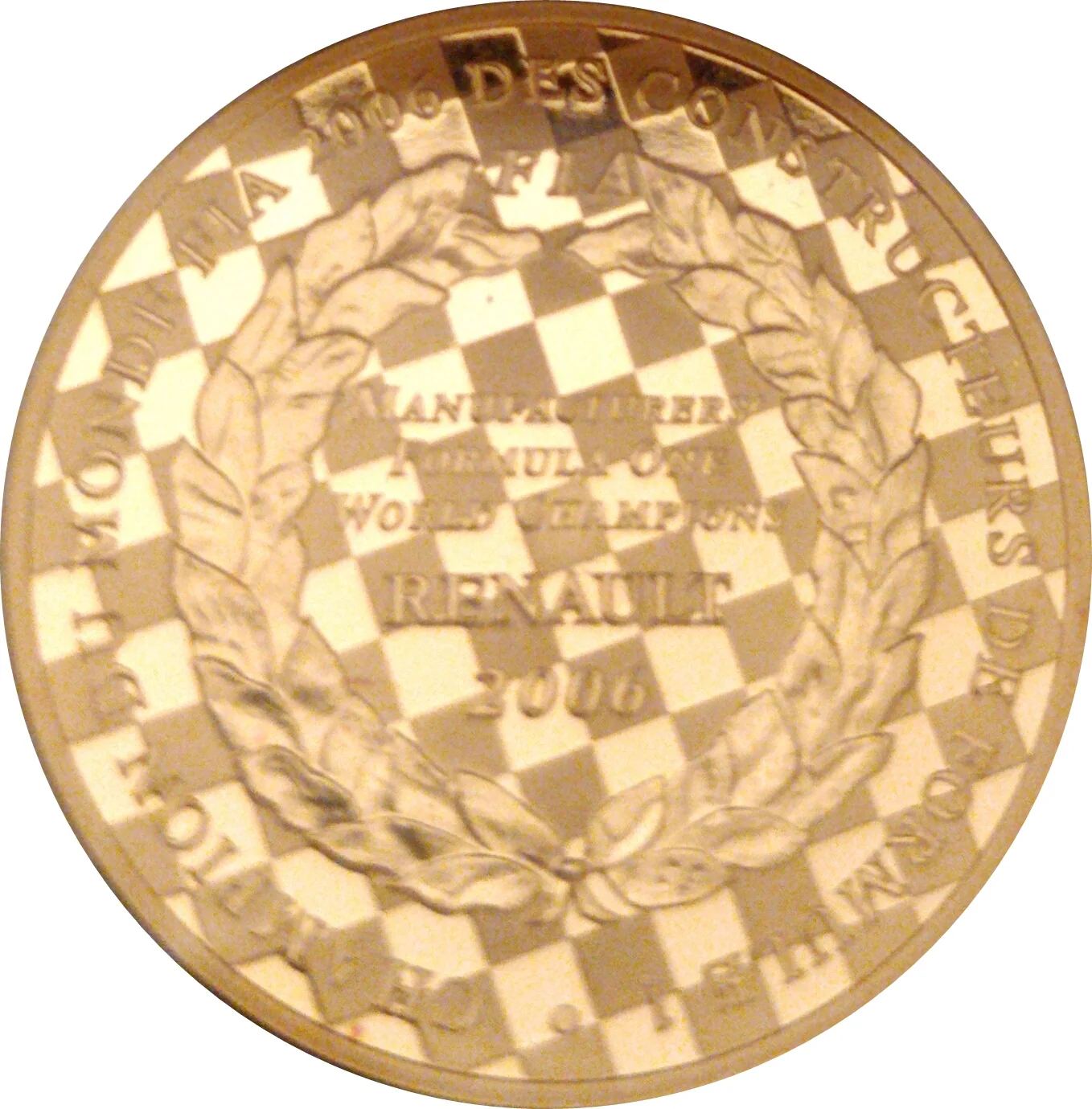 "2006 Renault F1 World Champions" within a laurel wreath on a checkered flag.