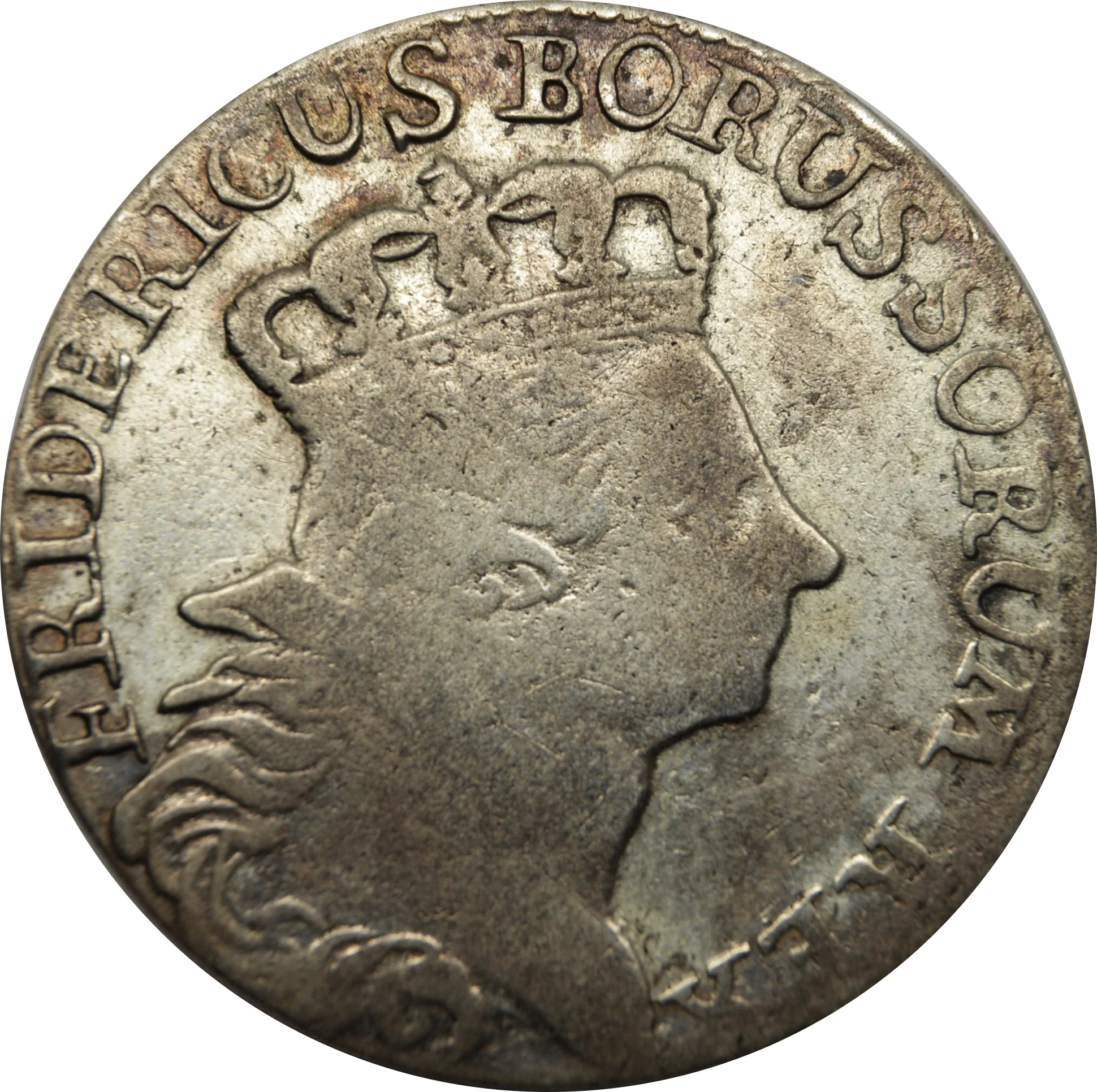 Description: A crowned, spread eagle with the king's monogram on its chest holds a sceptre and orb. The denomination is on the tail. The legend and year surround it, with the workshop mark between two stars in the exergue.