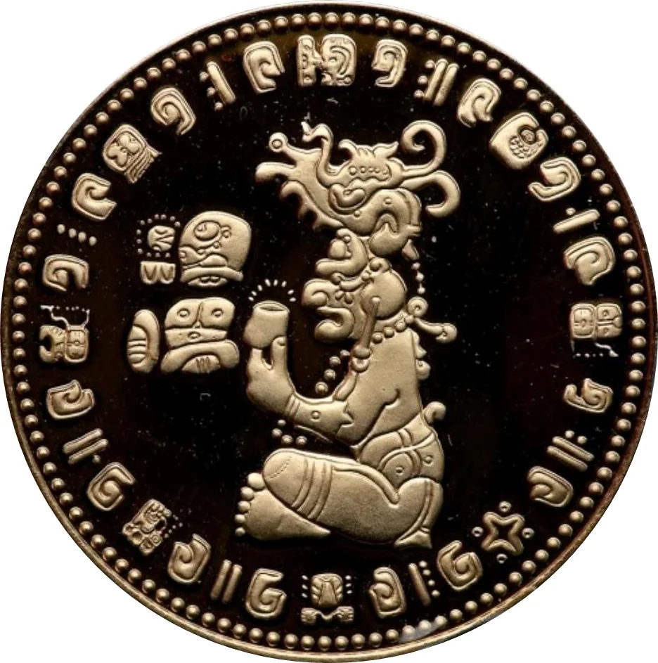 Itzamna seated left, encircled by 32 symbols within a beaded rim.