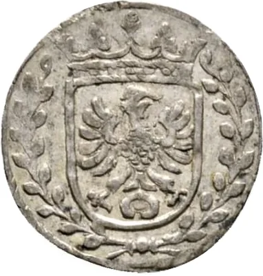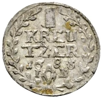 Wreath enclosing five-line inscription: denomination, date, and mintmaster initials.