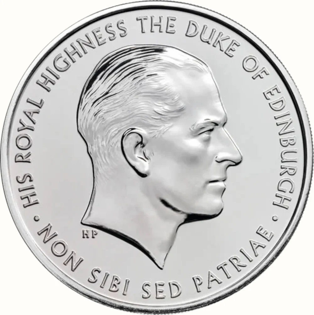 Portrait of the Duke of Edinburgh facing right, with lettering above and below.