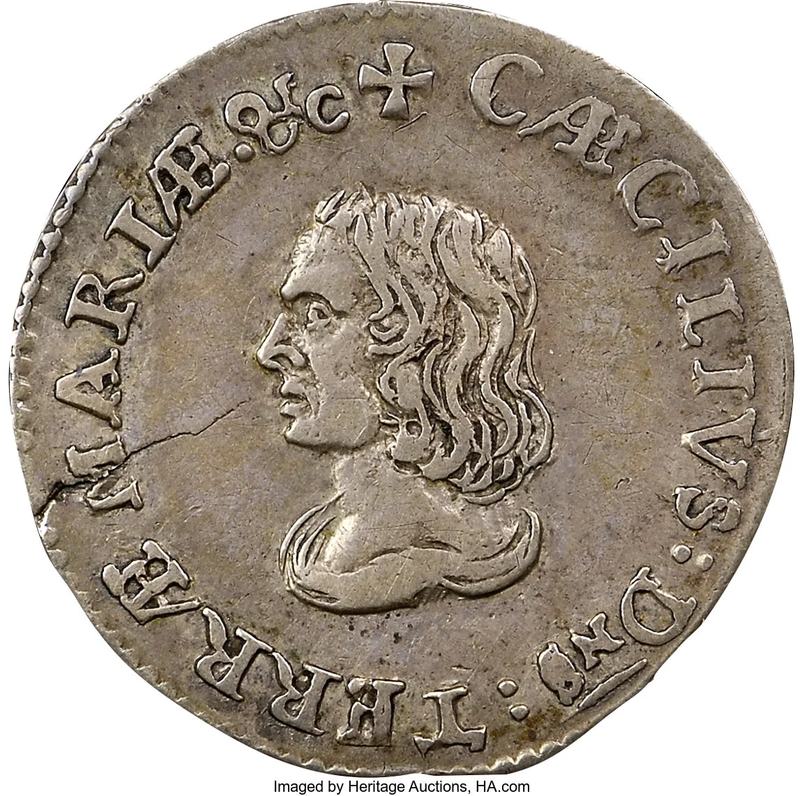 Bust of Cæcil Calvert, left profile.