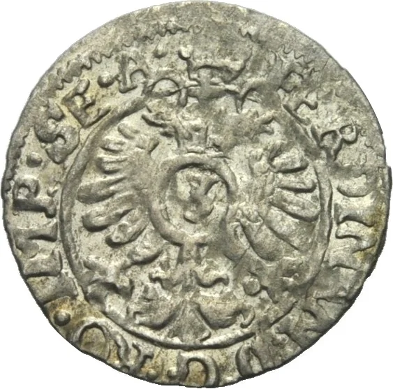 Imperial eagle with a crown, holding an orb, breast charged with "3" and titles of Matthias.