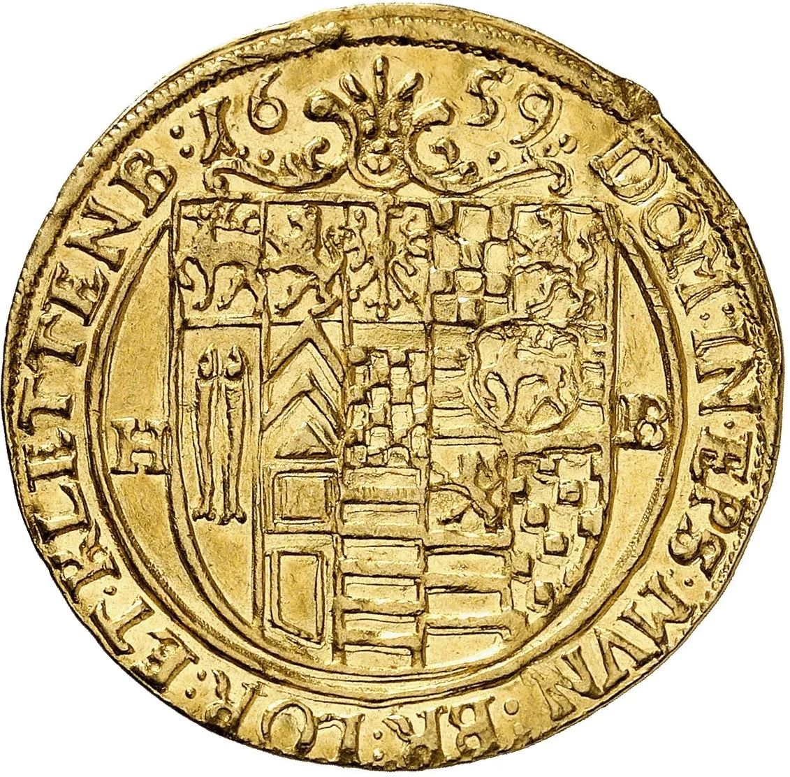 Stag left, orb above, Heinrich Ernst titles.