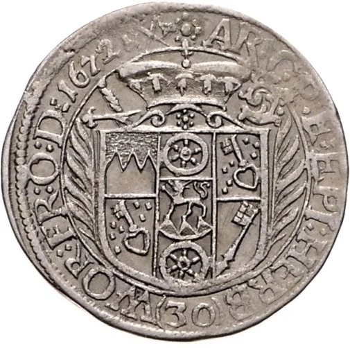 Schonborn shield on 6-fold arms, value 30 and date in legend.