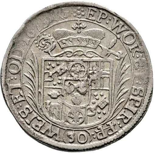 Crowned sixfold arms with Metternich shield, value 30, date in legend.