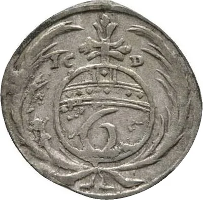 Imperial orb with mintmaster's initials in six sections, framed by palm branches.