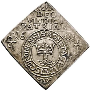 Kronstadt arms encircled by text, with additional inscription and date above.