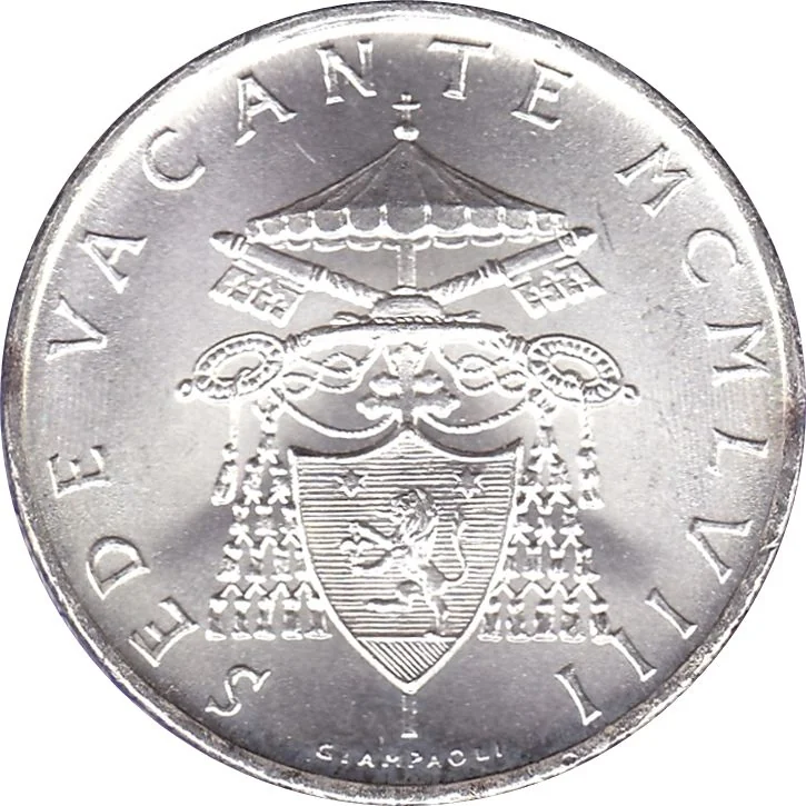 numismatic and commemorative in nature, intended for collectors and ceremonial purposes rather than for everyday commerce. Struck in precious metals like silver and gold, their face value was far below their intrinsic metal value, making them unsuitable for circulation. These coins bore the image of the reigning pope, and with the death of Pope Pius XII in October 1958 and the subsequent conclave, a practical monetary consideration arose: the need to produce new coinage featuring the image of his successor, which would be Pope John XXIII.