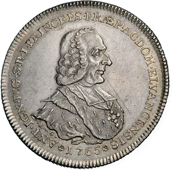 ANT.IGN.D:G.S.R.I.PRINCEPS.PRÆP.AC DOM.ELVANCENSIS 1765