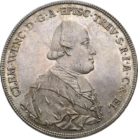 Elector's cap above arms, crossed sword and crozier behind, order cross divides value below.