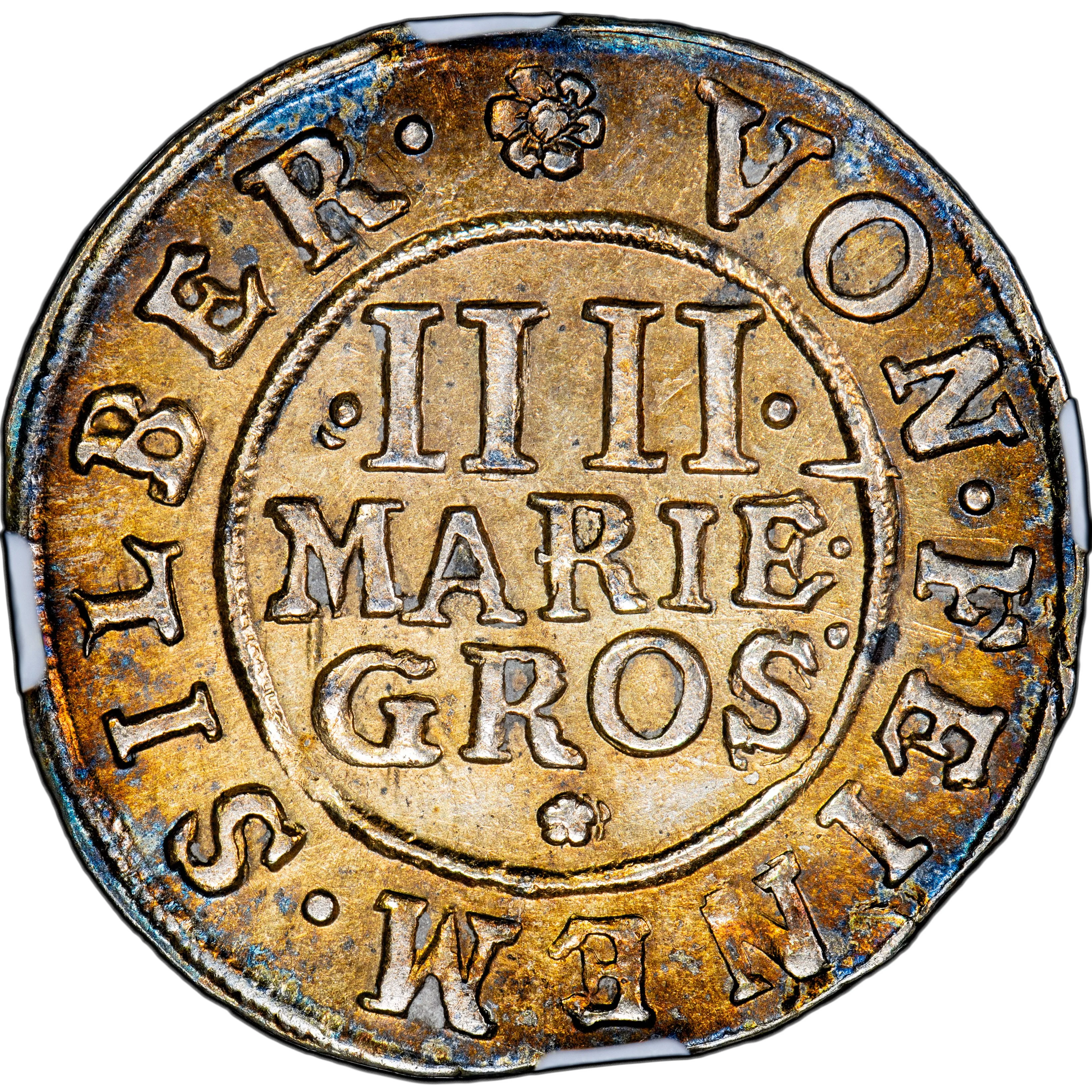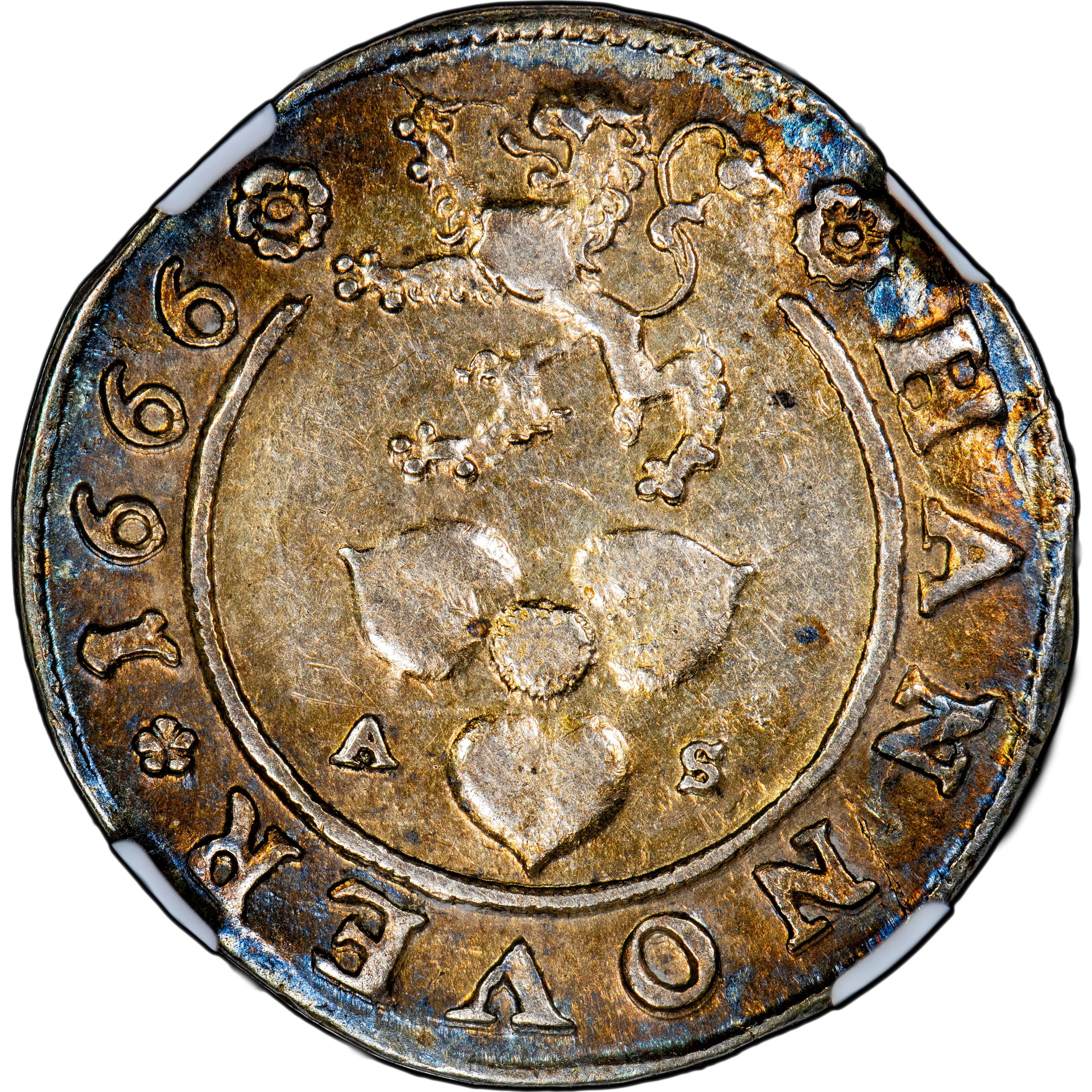 Lion left, city arms, mintmaster's initials. Legend surrounds.