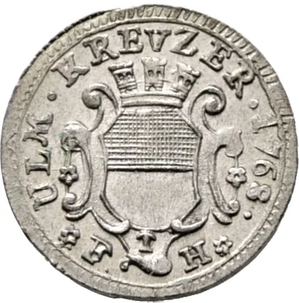 Crowned city arms in shield, mintmaster initials below, date in legend.