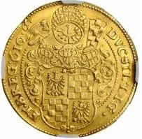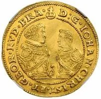 Half-length figures of Johann Christian and Georg Rudolf facing each other above an arabesque-decorated exergue.