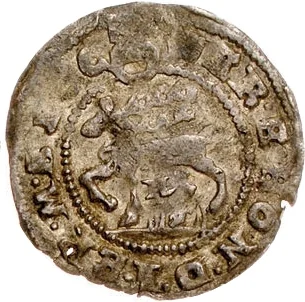 Three shields: Stolberg over Wernigerode and Hohnstein. Upper shield divides date, value IZ below.