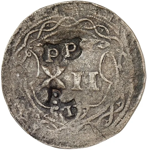 Half-length figure of St. Liborius, facing right, within a decorated double circle.