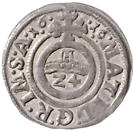 Oval shield with the arms of Paderborn and Fürstenberg in a baroque frame, over crossed sword and crozier, topped by a mitre.