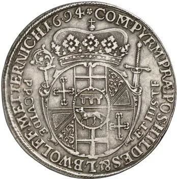 Inscription: COM. PYRM. PRÆPOS. HILDES. &. L. B. WOLFF. METTERNICH. 1694