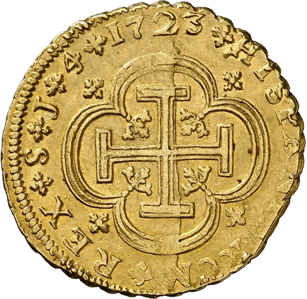 ✤ HISPANIARUM ✤ REX ✤ S ✤ J ✤ 4 ✤ 1723