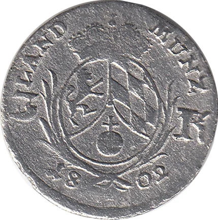 Shield with arms of Pfalz, Bavaria, and imperial orb, encircled by Golden Fleece, divides 3-K, date below.