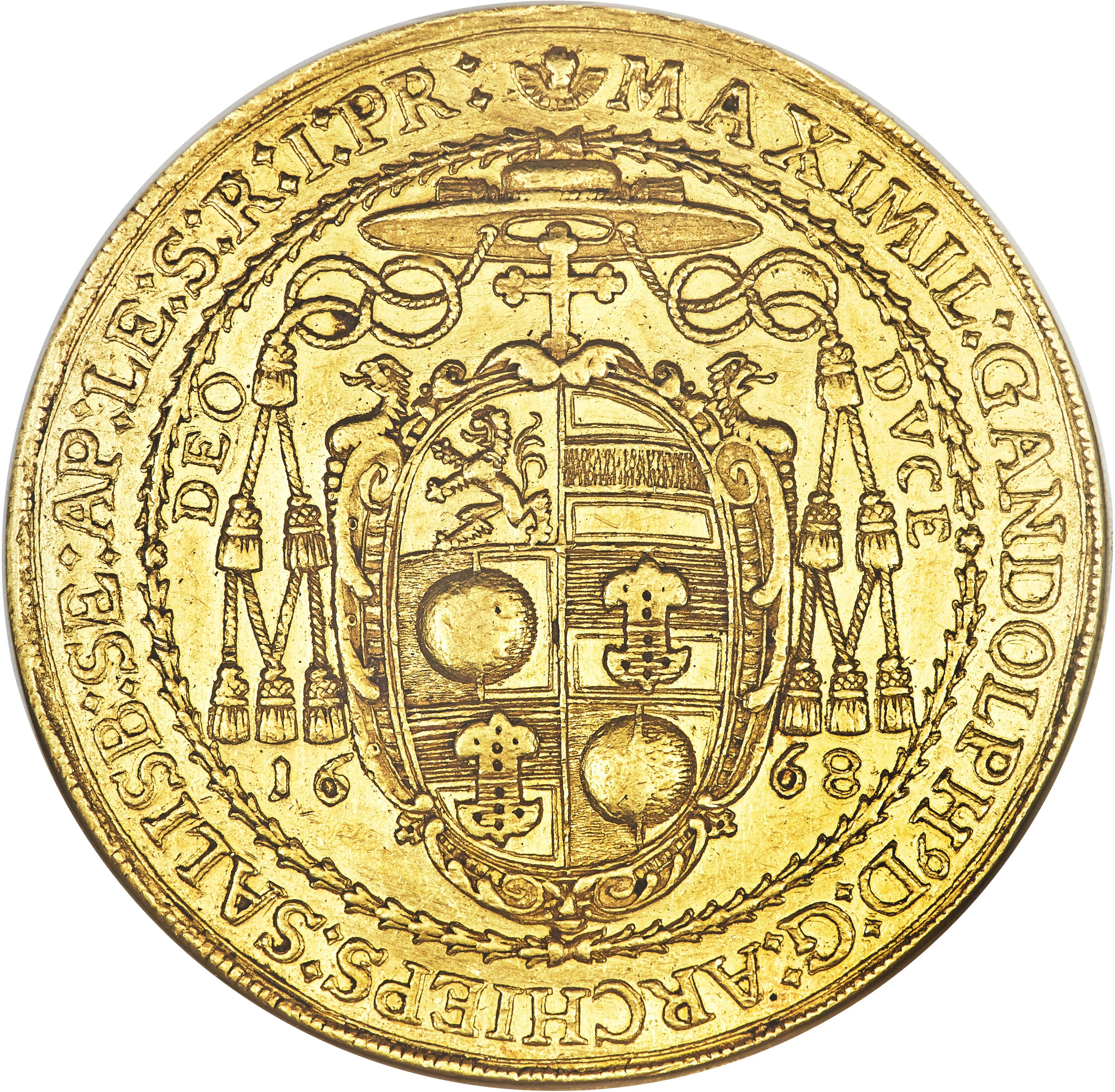 MAXIMIL : GANDOLPHꝰ D : G : ARCHIEPS : SALISB : SE : AP : LE : S : R : I : PR :