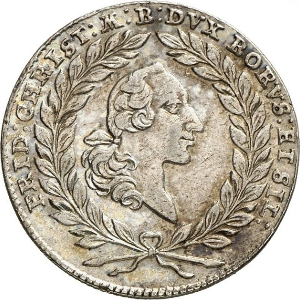 Friedrich Christian in right-facing portrait, encircled by laurel wreath.
