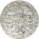 Saxon and Thuringian arms flanking an imperial orb with date above, mint mark below, surrounded by inscription.