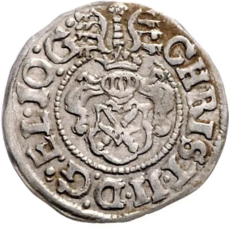 Electoral Saxon helmet above arms, three brothers' abbreviated titles.