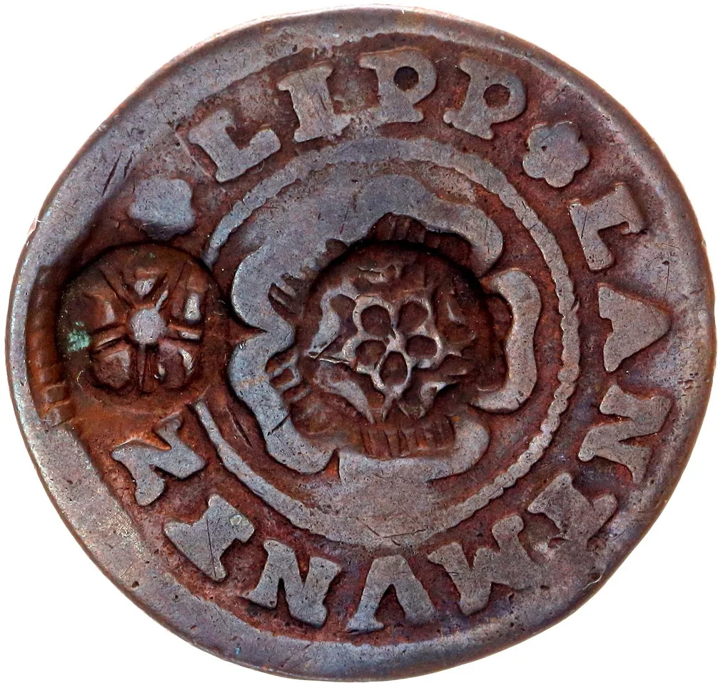 Rose with countermarks: 1671 (edge) and 1685 (center).