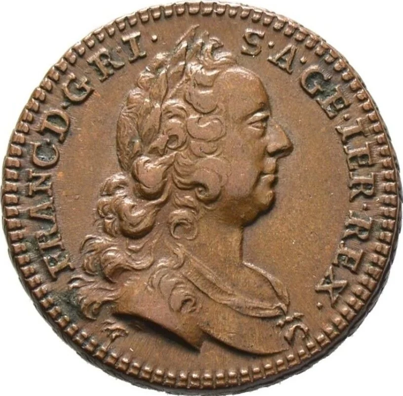 Portrait of Francis I of Lorraine facing right. The legend, beginning at 8 o'clock, omits his ducal titles.