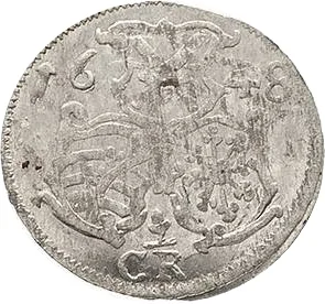 Three ornate shields, one over two, date on upper arms, mintmaster's initials below.