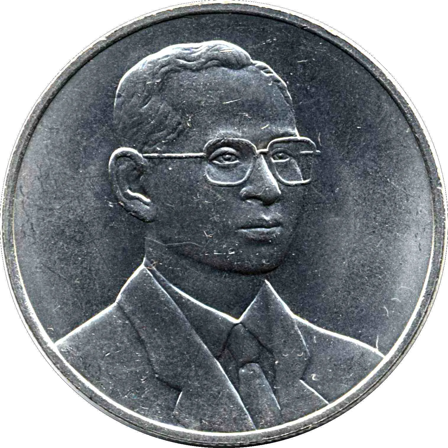 Bust of King Rama IX, half-right profile.