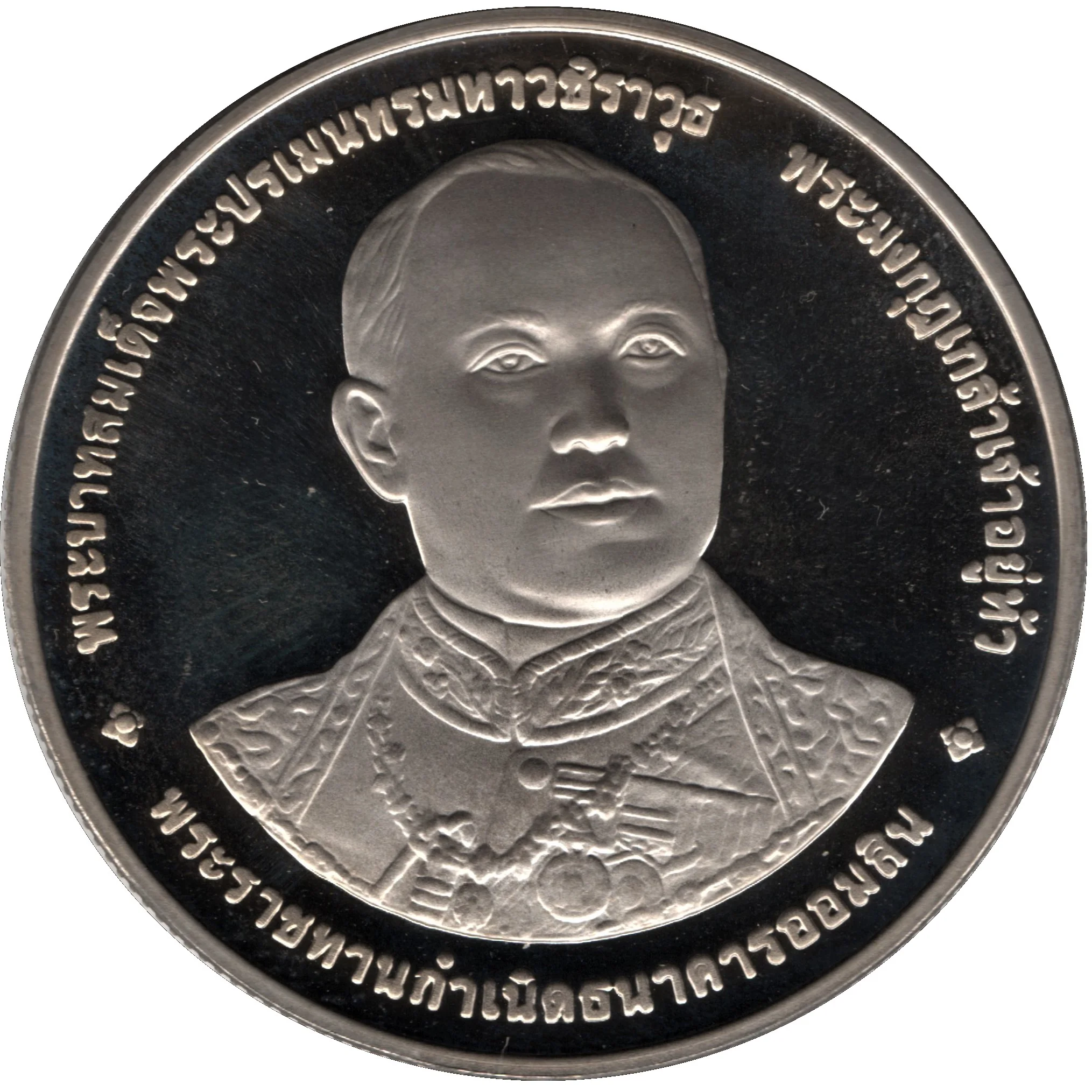 Bust of King Rama VI facing slightly right, encircled by text.
