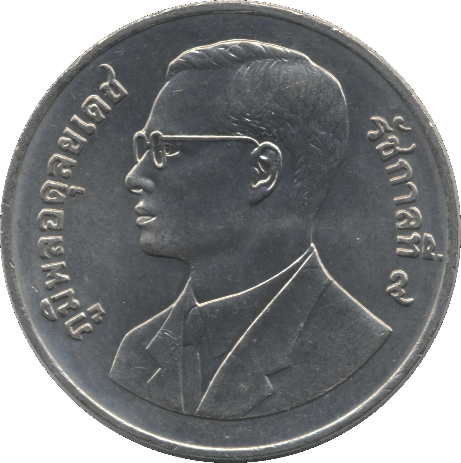 Bust of King Rama IX, left profile.