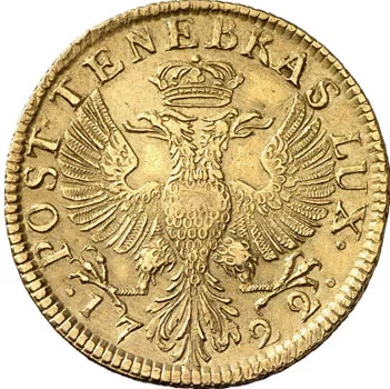 Imperial double-headed eagle crowned, bearing Geneva's coat of arms on its chest shield.