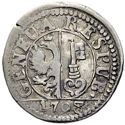 Cross with flowers in angles, within quatrefoil. Mint mark in legend.