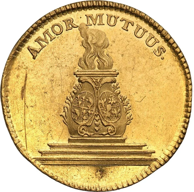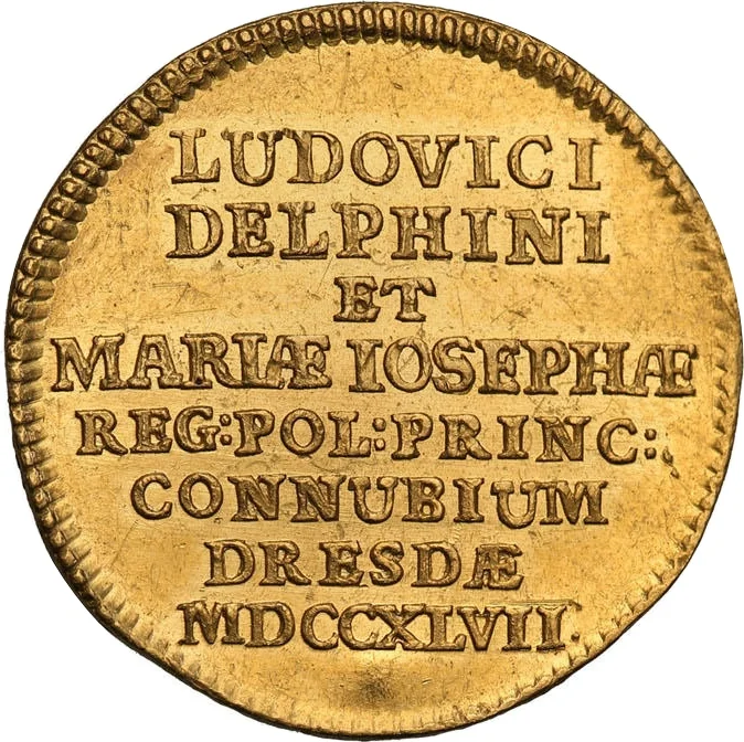 LUDOVICI // DELPHINI // ET // MARIÆ IOSEPHÆ // REG: POL: PRINC: // CONNUBIUM // DRESDÆ // MDCCXLVII