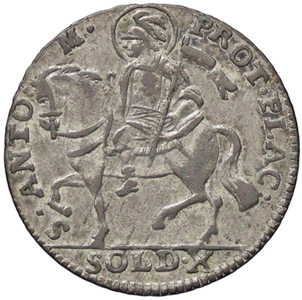 Saint Antoninus, nimbed, on horseback left with pennant; value below.