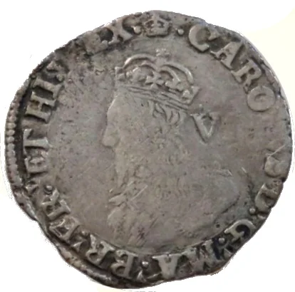 King Charles I crowned left, denomination right, legend around. Varieties exist.