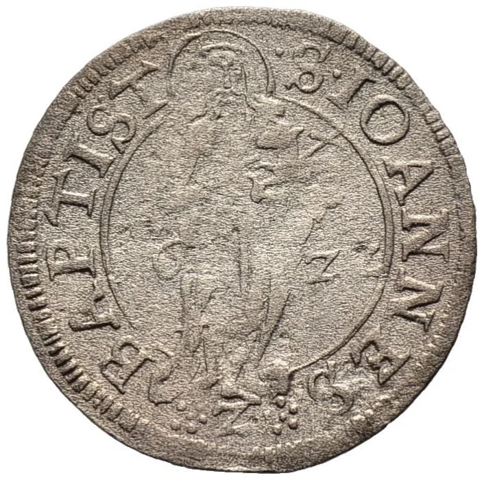 Saint John the Baptist holding a lamb, a cross in his arm.