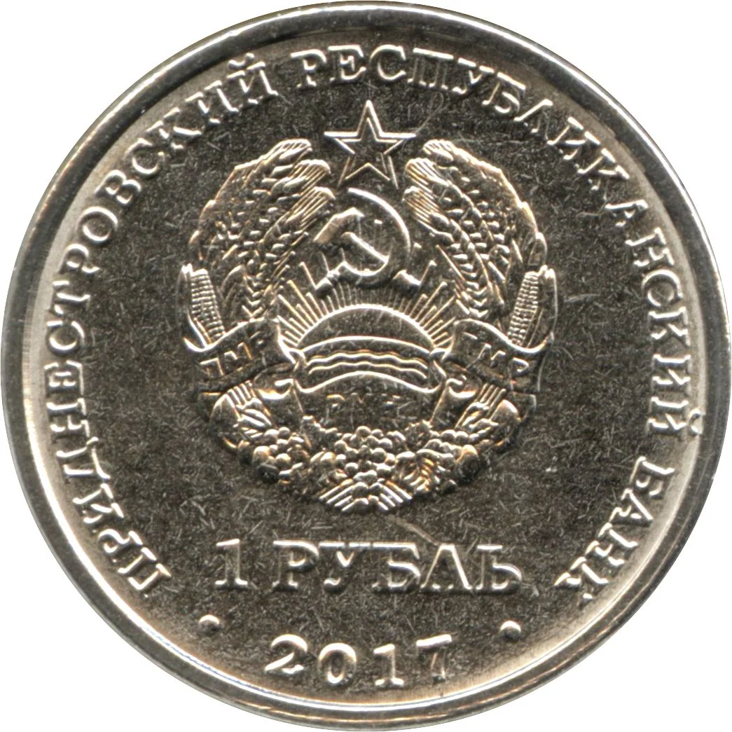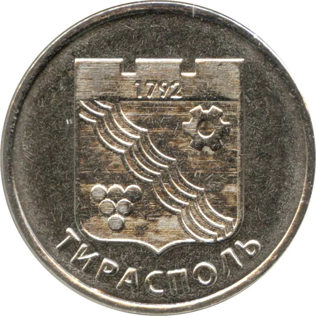 Transnistrian State Emblem, with denomination and date.