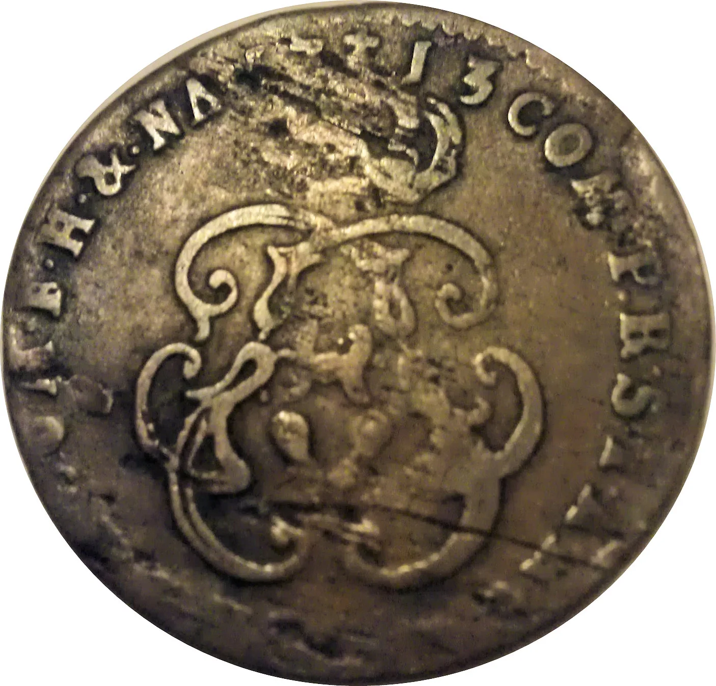 Crowned monogram, date at 12 o'clock, legend on the circumference.