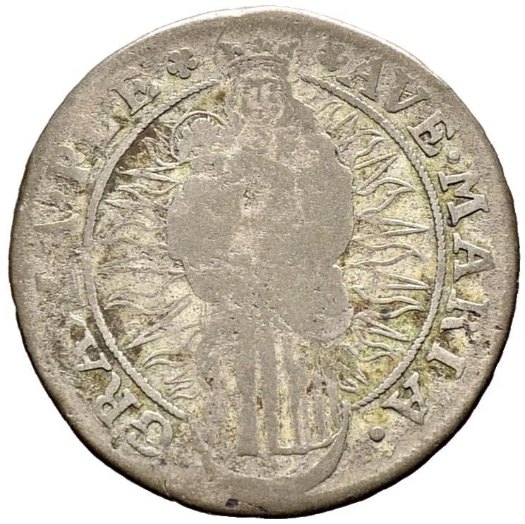 Four-fold arms in cartouche, value above in circle.