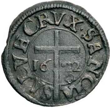 Date split by Latin cross.