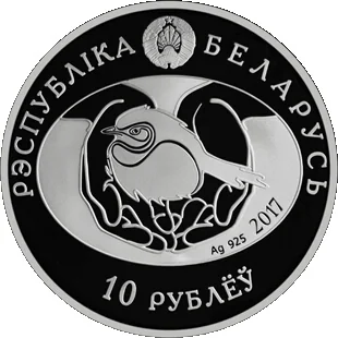 Description: Obverse: Relief State Coat of Arms. Center: A small bird cradled in palms, with the year below. Circumscription: "РЭСПУБЛІКА БЕЛАРУСЬ" above, denomination "10 РУБЛЁЎ" below.