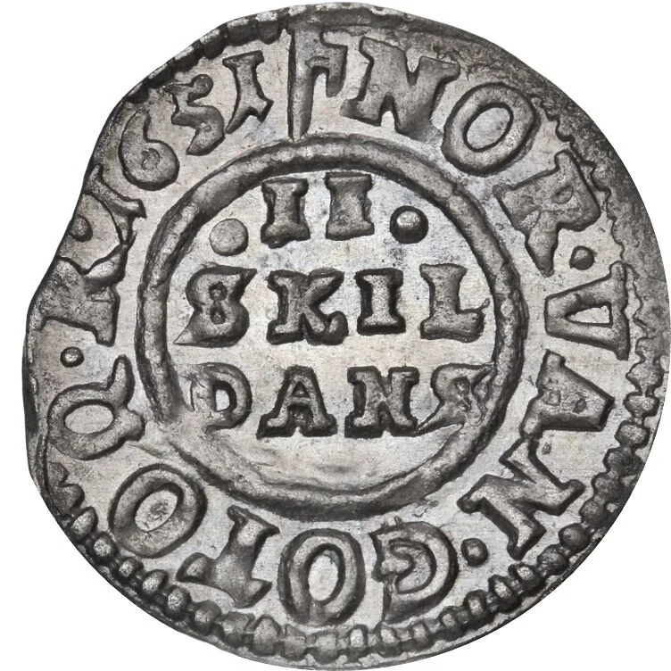 In 1651, Denmark was navigating a complex and challenging currency situation, largely a legacy of the costly Thirty Years' War (1618-1648). The state, under King Frederik III, was burdened by significant debt and a debased coinage. Earlier in the century, the government had repeatedly engaged in "coinage manipulation," reducing the silver content in coins like the skilling and mark to generate short-term profit for the royal treasury. This practice led to a proliferation of coins of varying intrinsic value, causing confusion, inflation, and a loss of public trust in the currency.